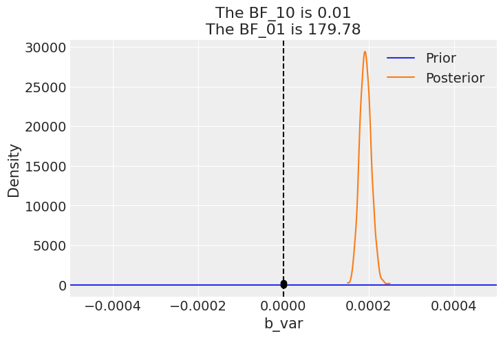 arviz - WARNING - The reference value is outside of the posterior. This translate into infinite support for H1, which is most likely an overstatement.