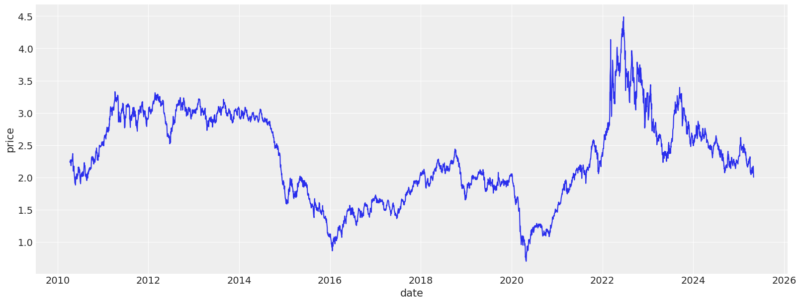 This post walks through that process: loading and transforming market data, fitting the model, simulating future prices, and estimating option payoffs. It’s a basic framework, but a flexible one, and I’ve also started thinking about ways to extend it—for example, conditioning on storage levels data.