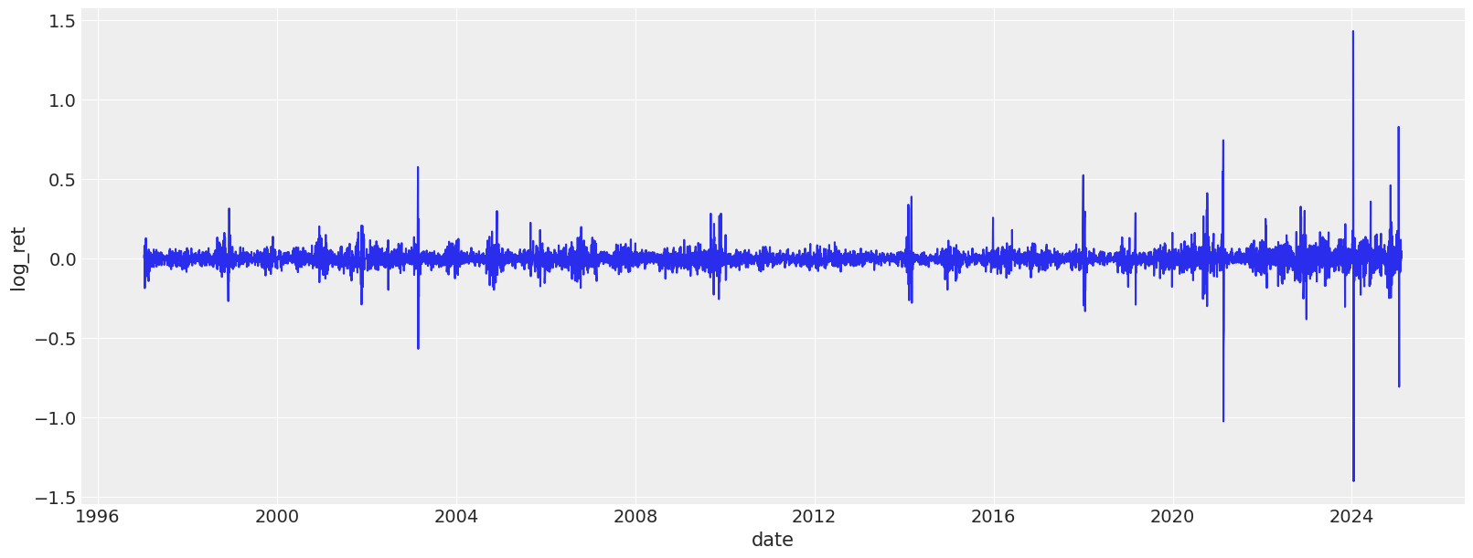 sns.lineplot(df_with_features, x="date", y="log_ret")